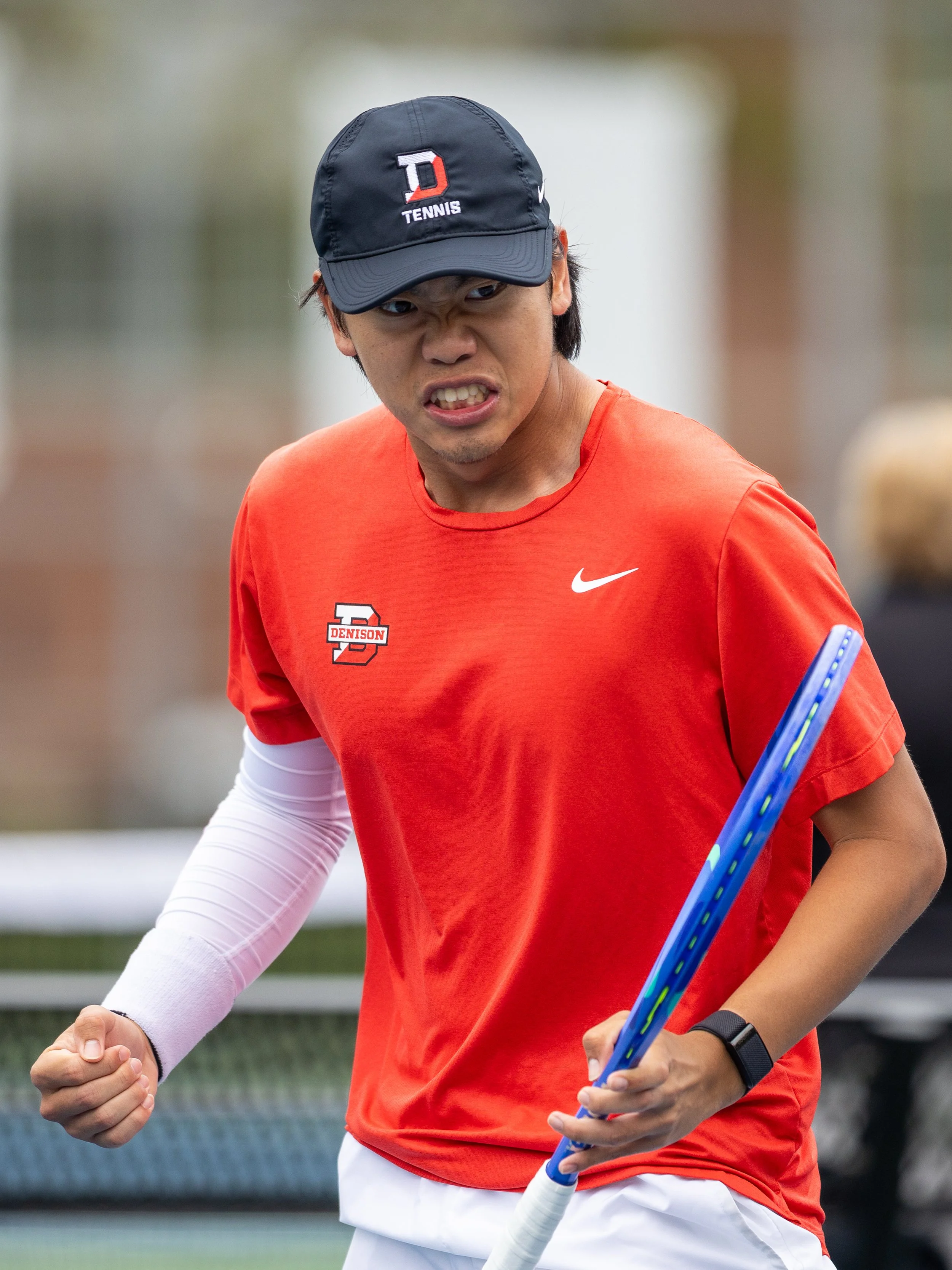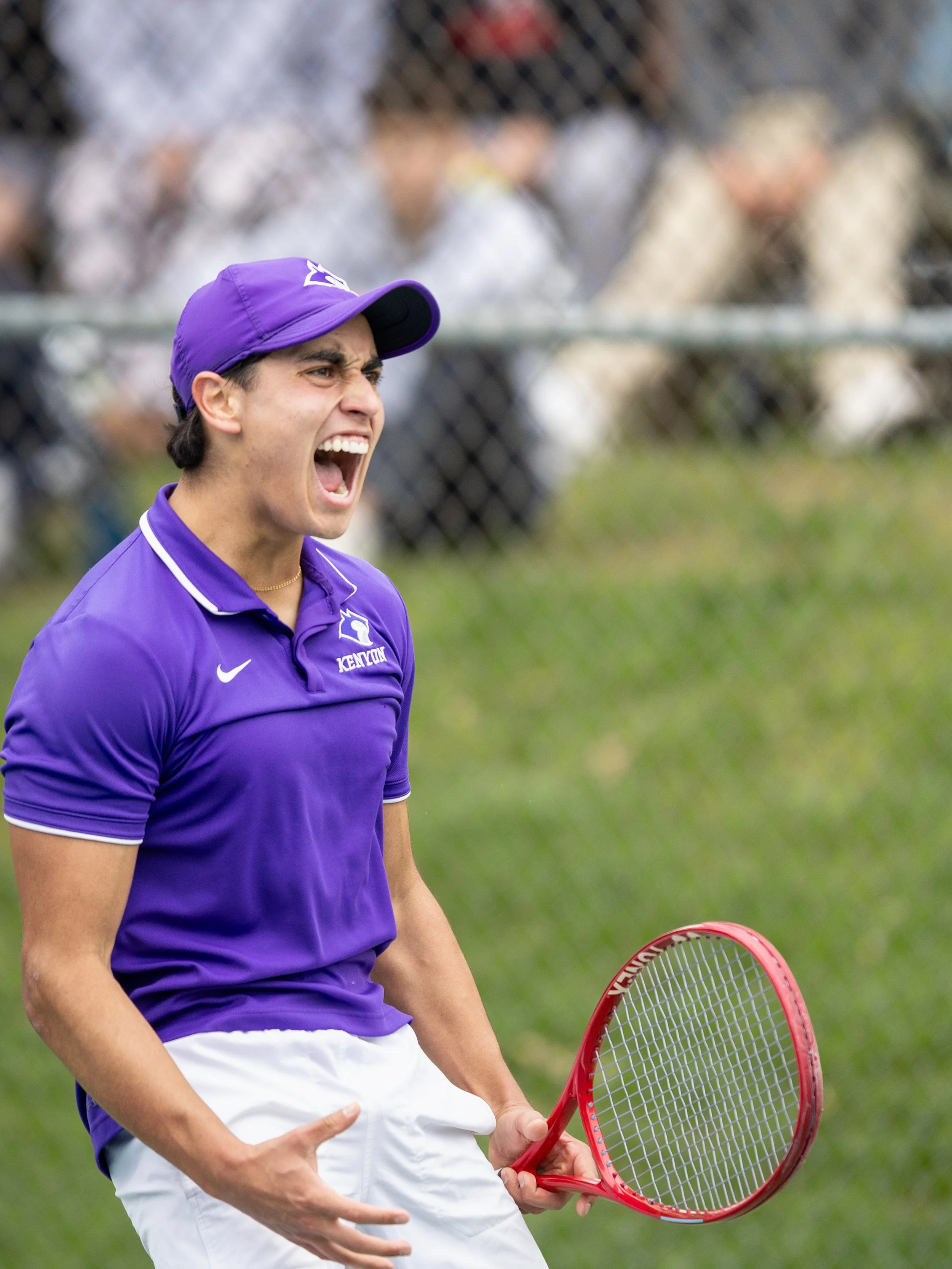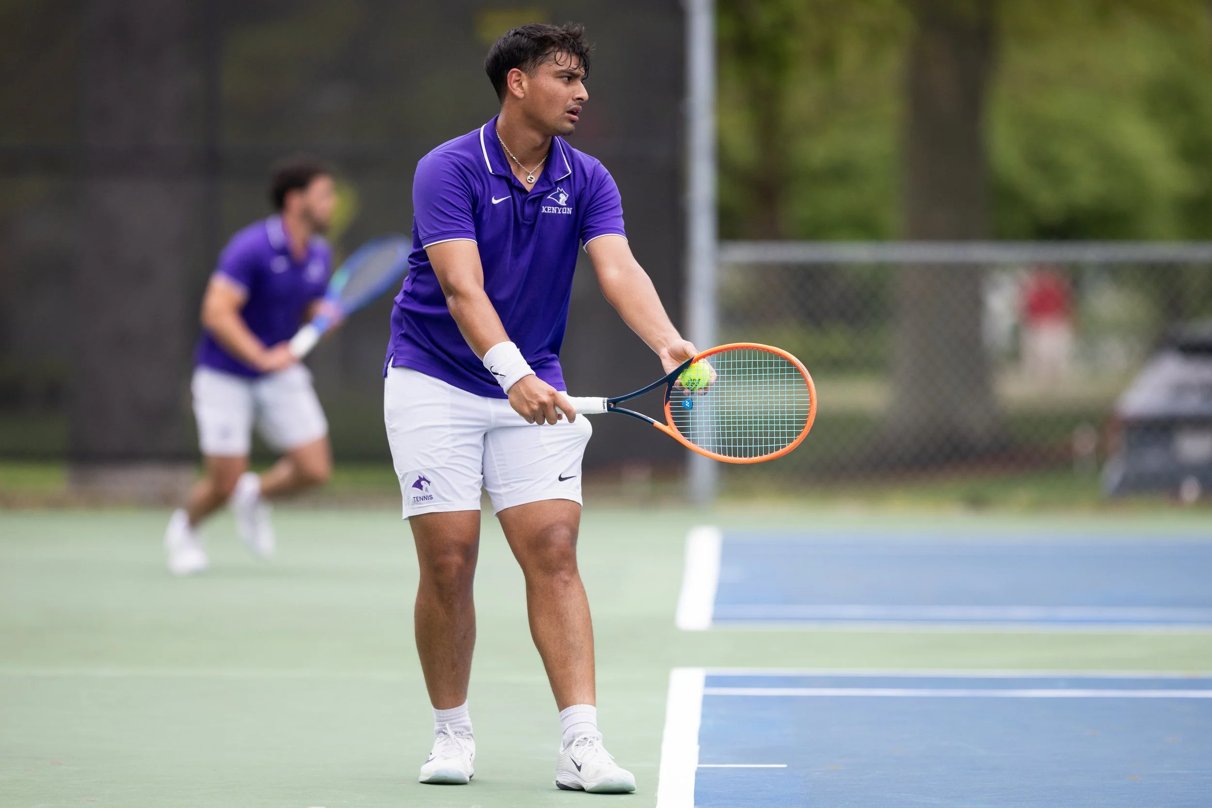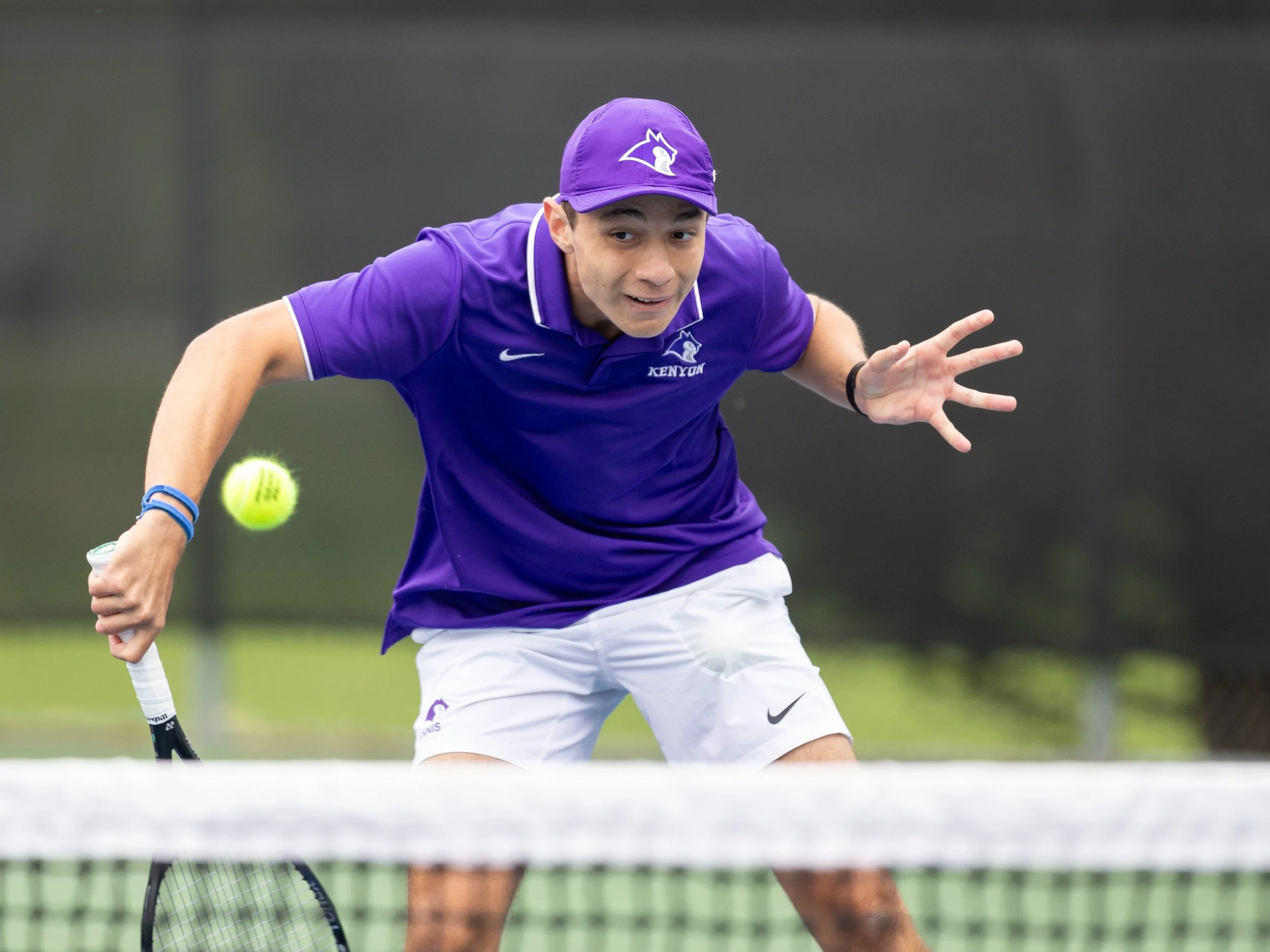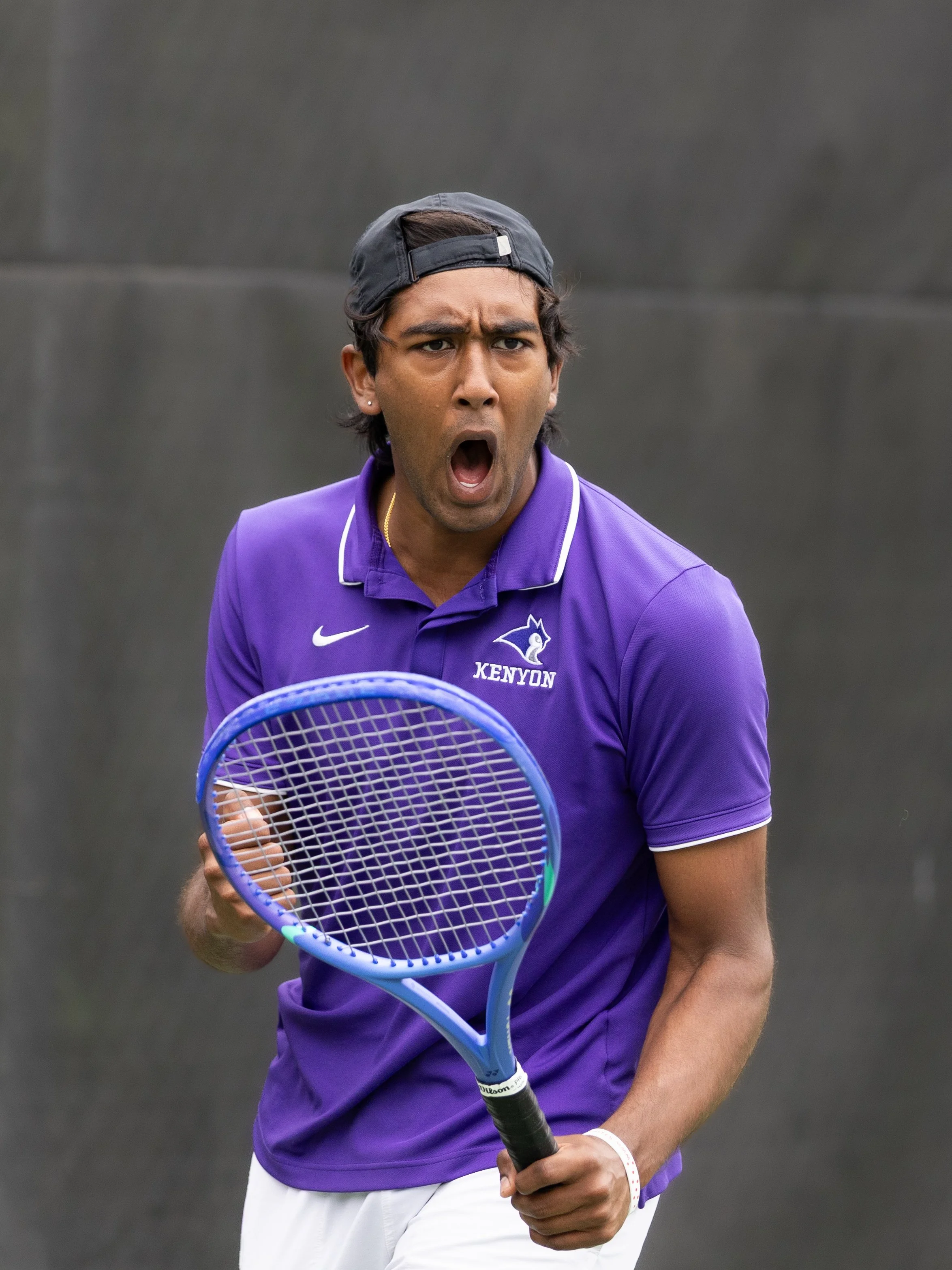 Denison’s road to repeat as back to back national champions began with a familiar foe: Kenyon College. Kenyon Men’s Tennis entered the competition ranked ninth in the nation, and have had plenty of success of their own in recent years. This top ten match-up was of much anticipation as only one team from the NCAC earn the automatic tournament bid. The match scoring began with Denison striking first blood as first doubles duo Ethan Green and Kael Shah quickly went up 6-1 over Kenyon’s Maximo Llamas Castellanos and Rohan Sriram. Soon after, Denison’s Wesley Huang and Jacob Patterson secured the doubles point beating Alejandro Gonzalez and Eliezer Gonzales of Kenyon with a score of 6-3.